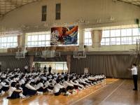 集団宿泊研修の結団式を行いました。教頭先生・学年主任の先生から命を守り安全に過ごすこと、みんなが気持ちよく過ごすための方法を学ぶこと、友達と協力をして充実した2泊3日にすることなどのお話をいただきました。充実した宿泊研修になることを願っています。