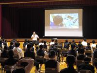 5月16日(月)、愛媛県立松山聾学校 河村義和先生をお迎えして、「難聴について考えてみよう」という講話を1年生全員で聞きました。