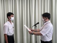 生徒会本部役員は、立派な態度で教頭先生から任命書を受け取りました。また、引継式では、旧本部役員から新役員へエールを伝え、心温まるものとなりました。